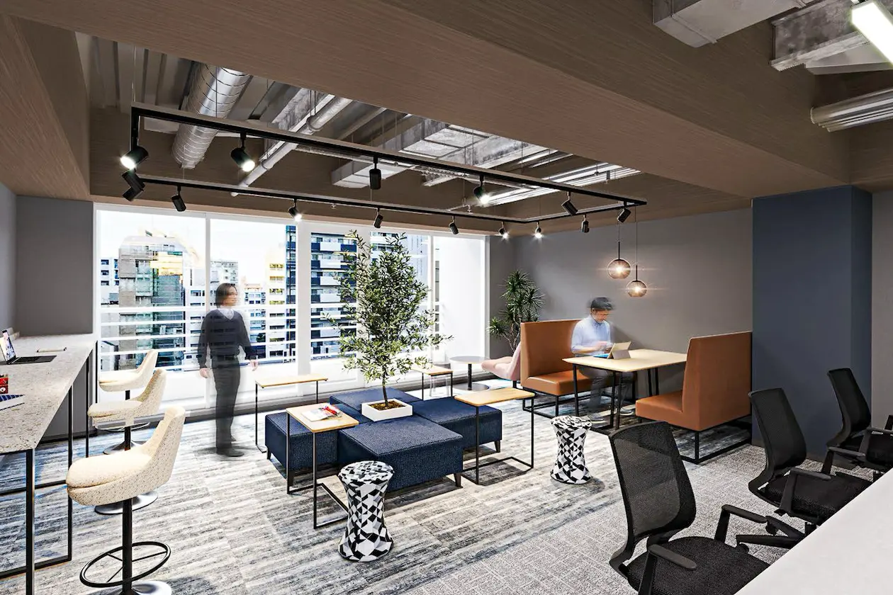 ワークスペース・会議室・Webブース・ラウンジのすべてが一体となり、スタートアップから成長フェーズの企業までフィットする構成です。