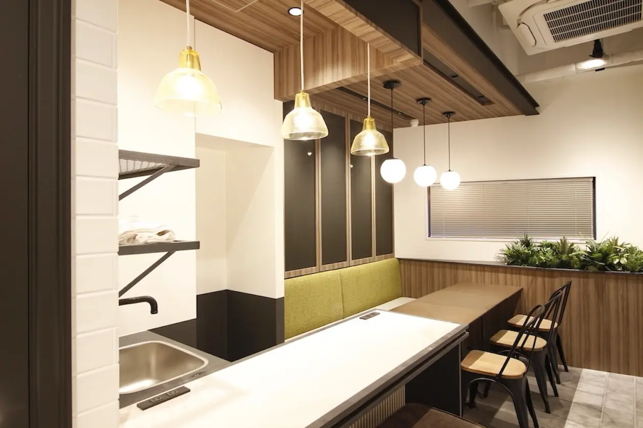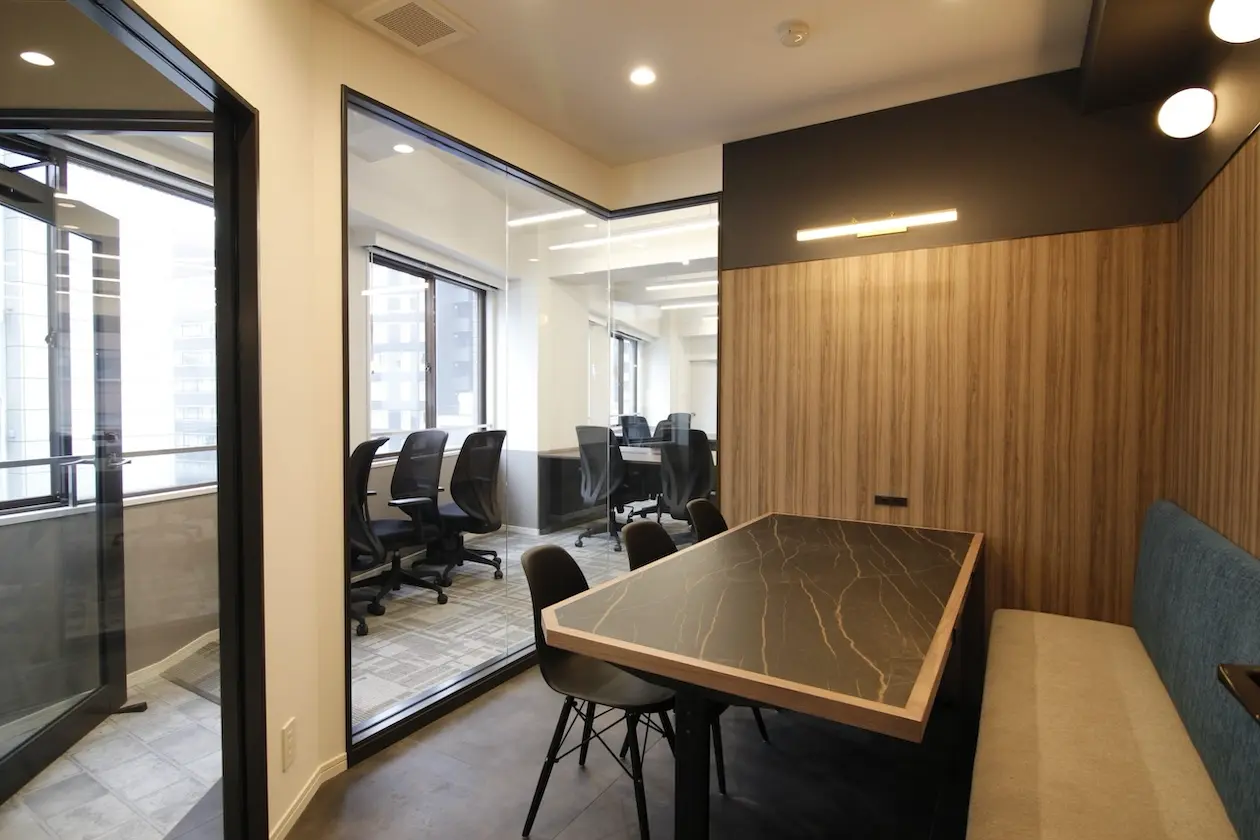 カフェのような落ち着きのあるデザインが特徴のセットアップ(会議室・フリースペースも完備)