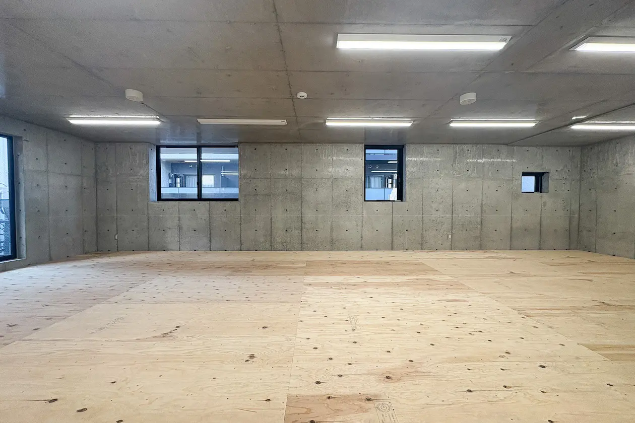 床はタイルなどを貼っていない状態ですが物によってはカーペットを引けば無機質になりすぎ無いかと。