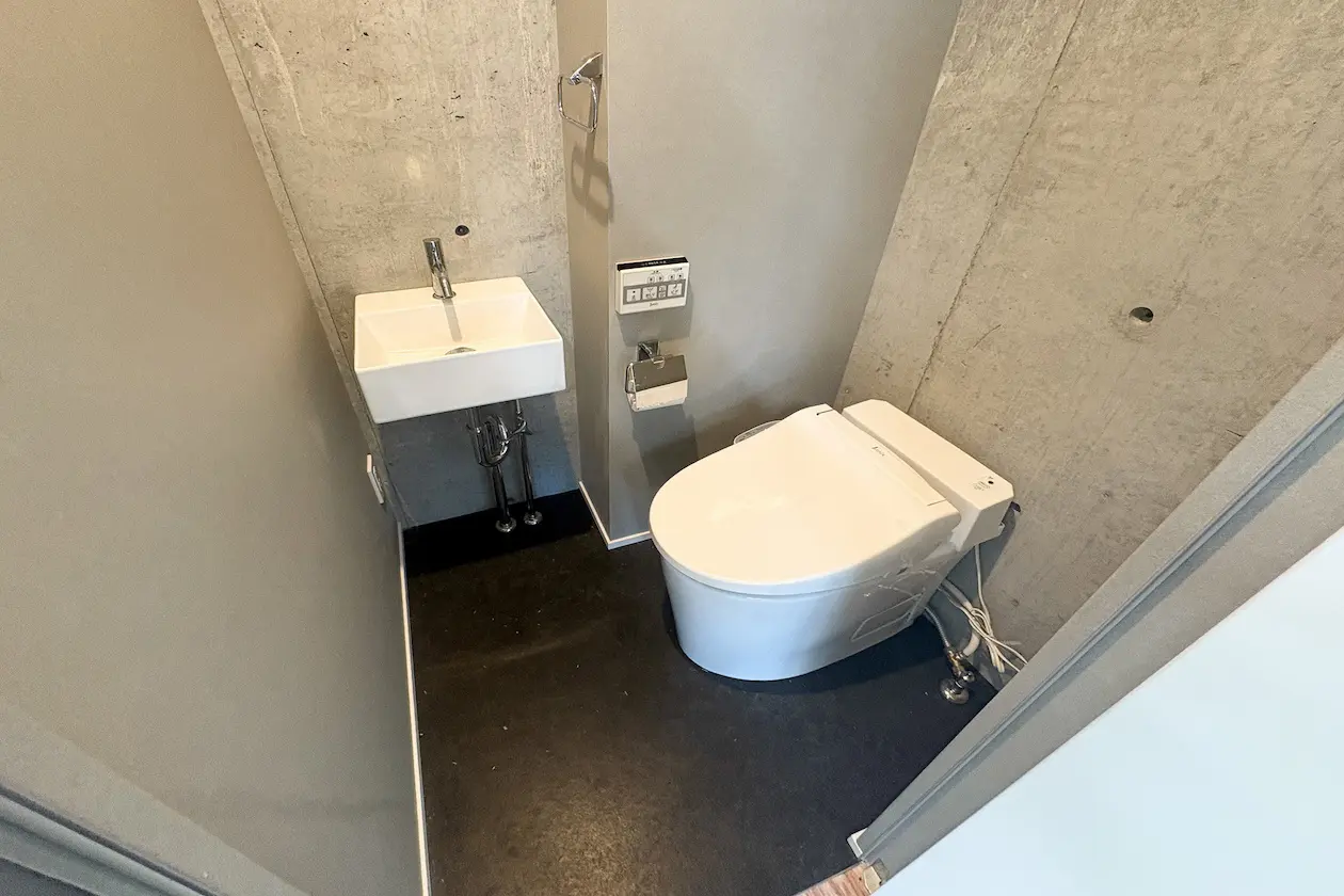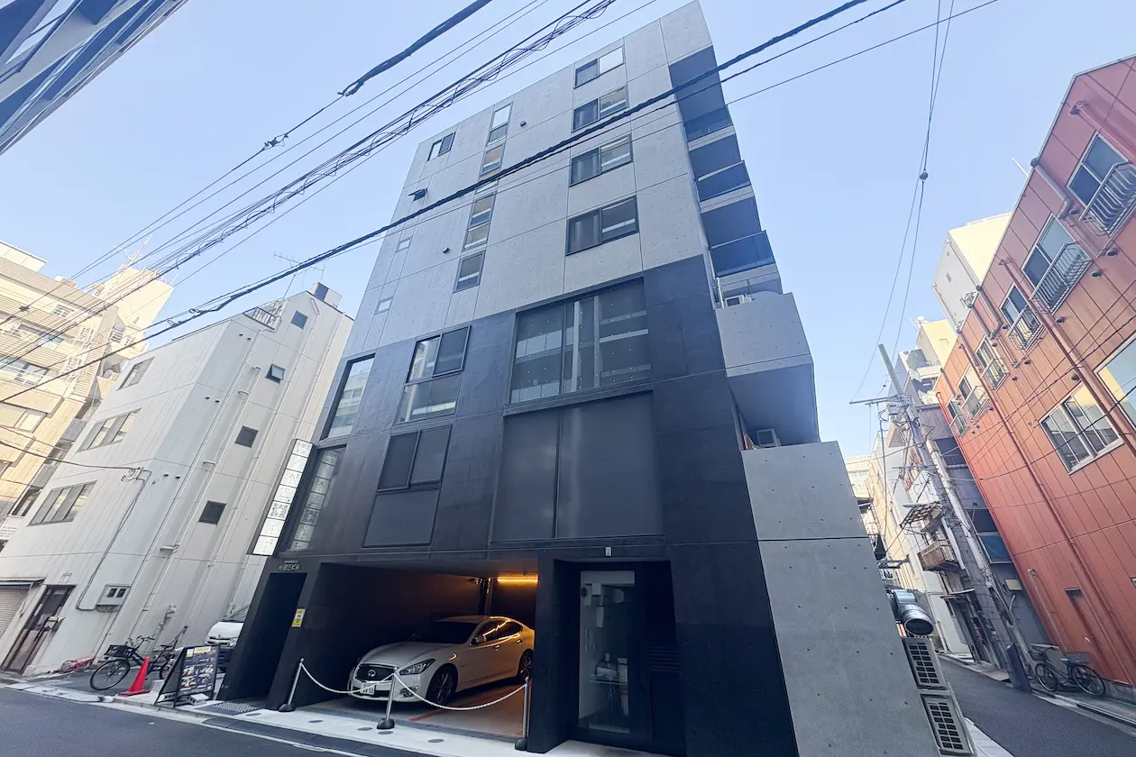 築地駅まで徒歩6分と駅からの距離も程よく、出入りの多い企業や来客のある業態にも使いやすい立地にあります。コンクリートな質感にブラックトーンの外壁がアクセントとなってスタイリッシュモダンな印象の外観です。