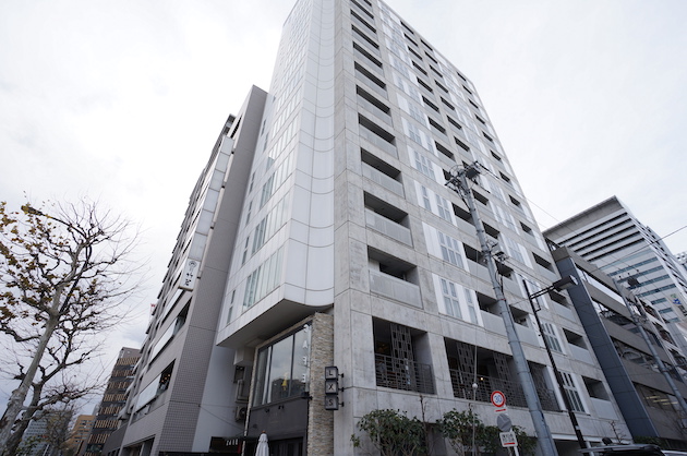 綺麗に整備された道路を挟んだ向かいには築地本願寺が鎮座する、新旧の魅力が詰まった交差点の一角に佇むカフェ付きSOHOを紹介します。