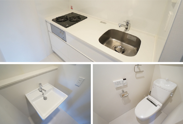 キッチン、水回りまで徹底した白い空間。細部までこだわりが詰まっています。