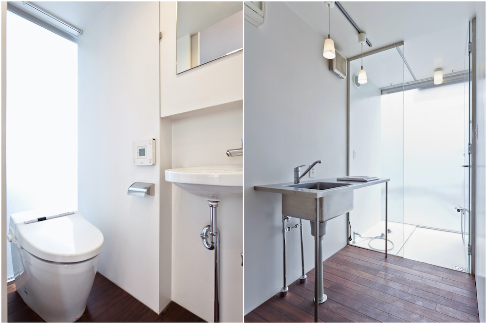 元々はシャワールームだったキッチン奥の空間は、表通りからは磨りガラスで中が見えないようになっています。