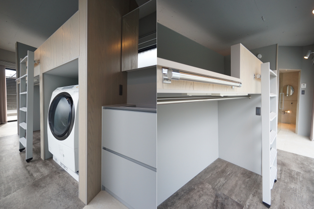ベッドスペースが備わっている点は魅力の一つ。泊まり込みの作業や、休憩時に重宝しそうです。ドラム式洗濯機も設備として設置されている為、ホテルやセカンドハウス代わりにも利用できるのでは。