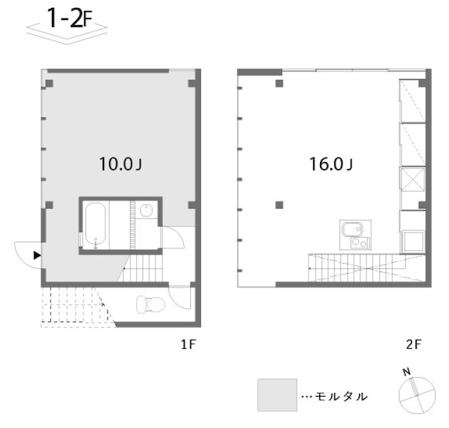 1階と2階で雰囲気が一変するメゾネットタイプの本物件。