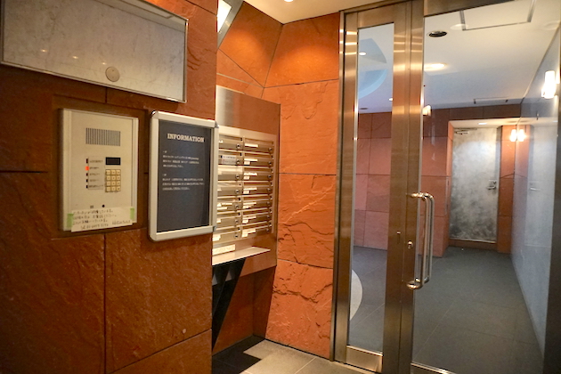 エントランスは温かみのあるオレンジとガラスとスチールでまとめられています。