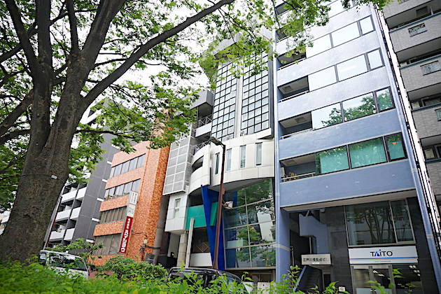 コンクリートとガラスのファサードが特徴的なビルですが、周囲に溶け込みひっそりと佇んでいます。