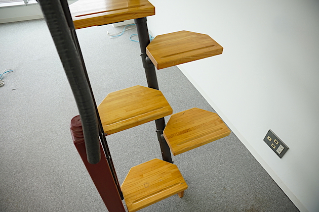 上階へはユニークな階段を使って。登り下りにはコツがいりそうです。