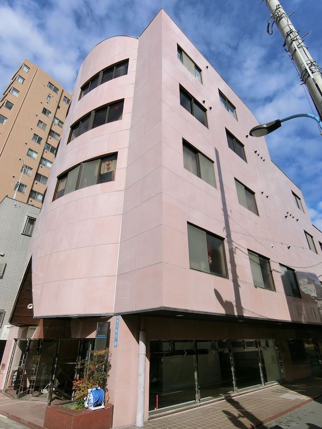 平成元年に竣工されたうすピンク色のファサードが特徴的。