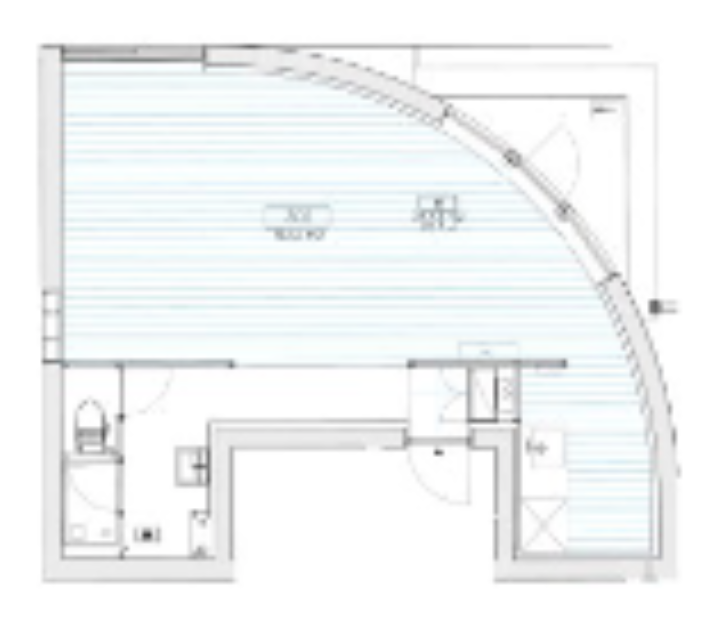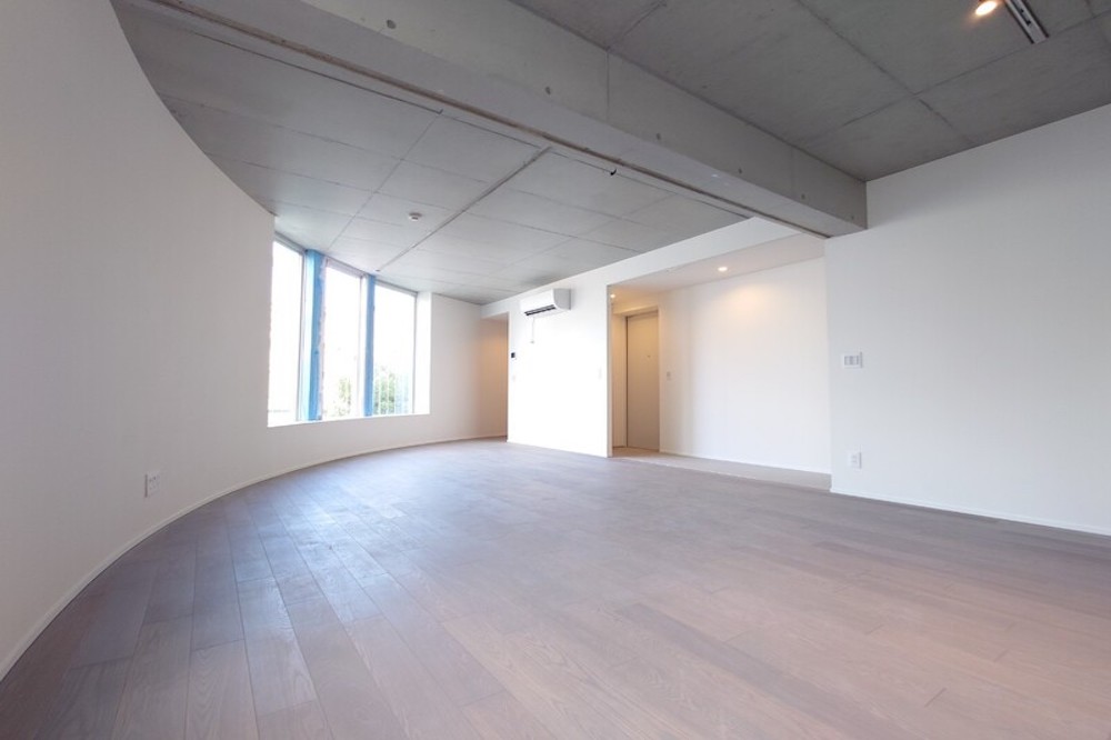 丸みを帯びたワンルームタイプとなっており、レイアウトは多少工夫が必要になりそう。