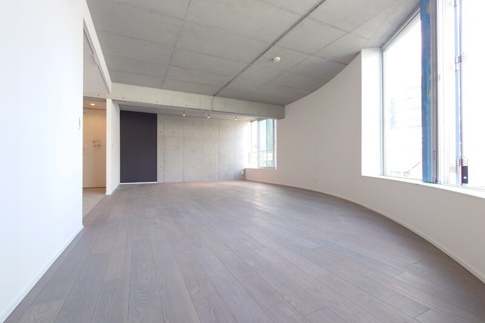 内装は打ちっ放しのコンクリート天井に白壁、フローリングとスタイリッシュなデザインです。