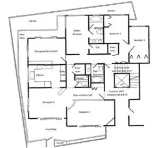 間取りは4SLDKの広々とした約203㎡。いくつかの部屋に分かれているので、事務所やSOHOとしては使いやすい間取り。