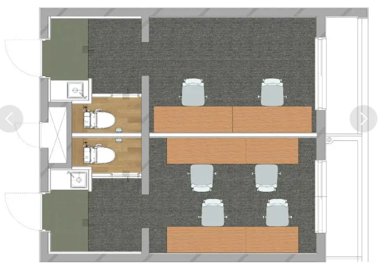 レイアウトは4つあるパターンの中からお選びいただけます。こちらはパターンD、2人での利用になります。
