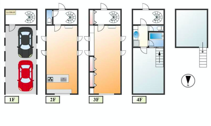 1階部分には2台分駐車場があり、ハイルーフ車も駐車可能です。