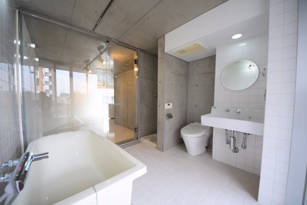 清潔感溢れるシースルーのバスルームもデザイナーズを感じさせます。