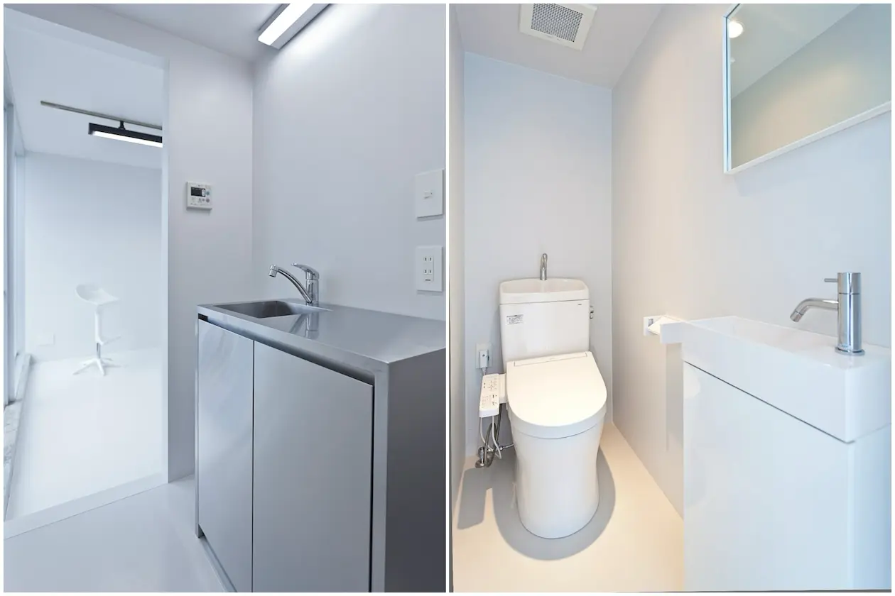 水回りはコンパクト。室内と同じように白をベースとし清潔感が感じられます。