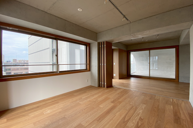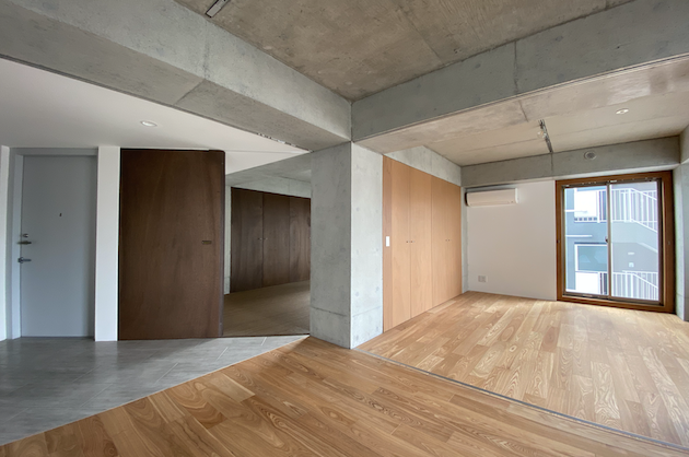 内装は木材の木の温かみを感じるフローリングに躯体現しの無機質な天井がうまく調和しバランスのとれた心地の良い空間に仕上がっています。