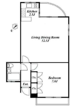 今回ご紹介するお部屋は1LDKタイプです。こちらは、約12.2帖のL字型のお部屋です。