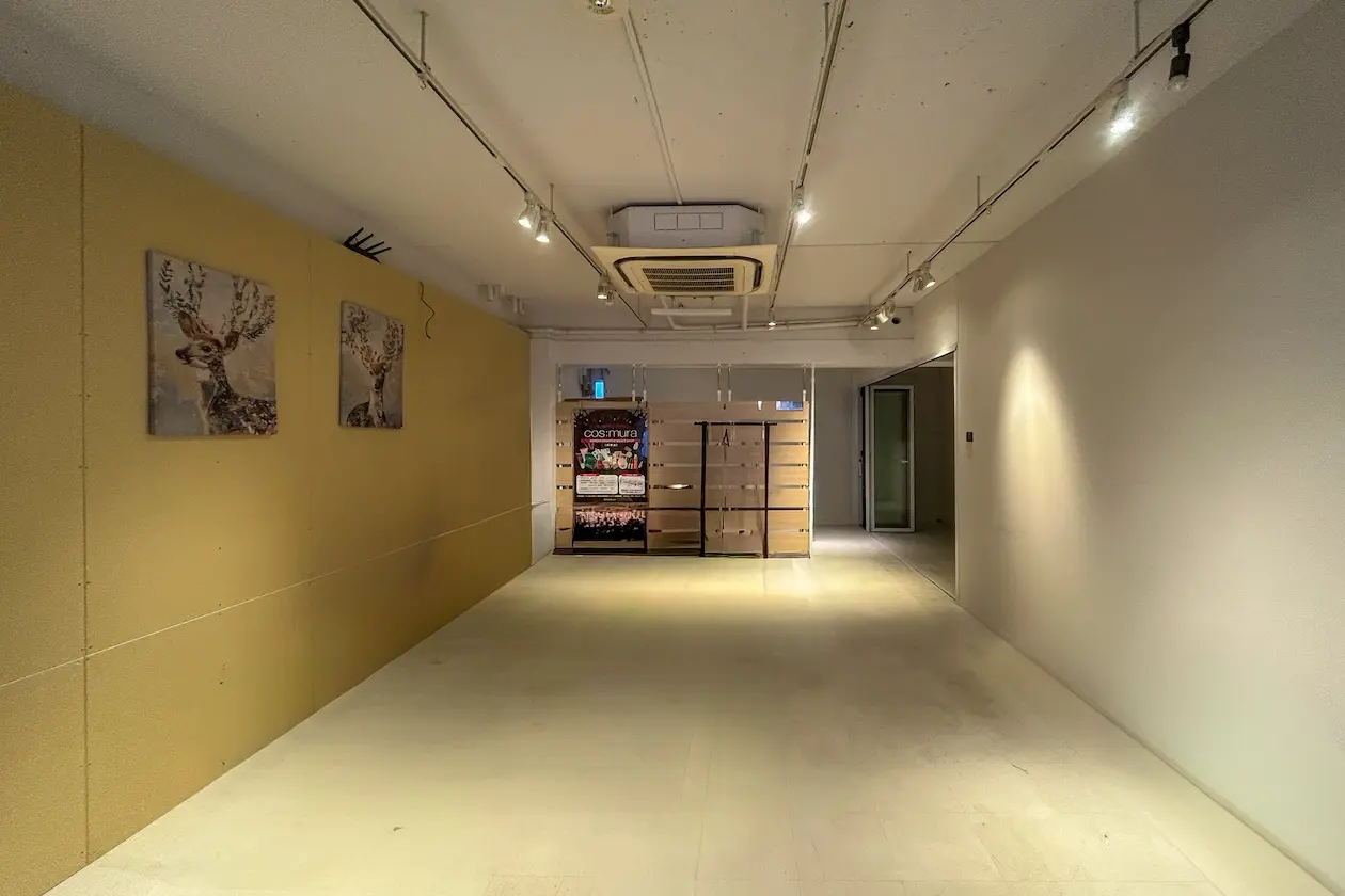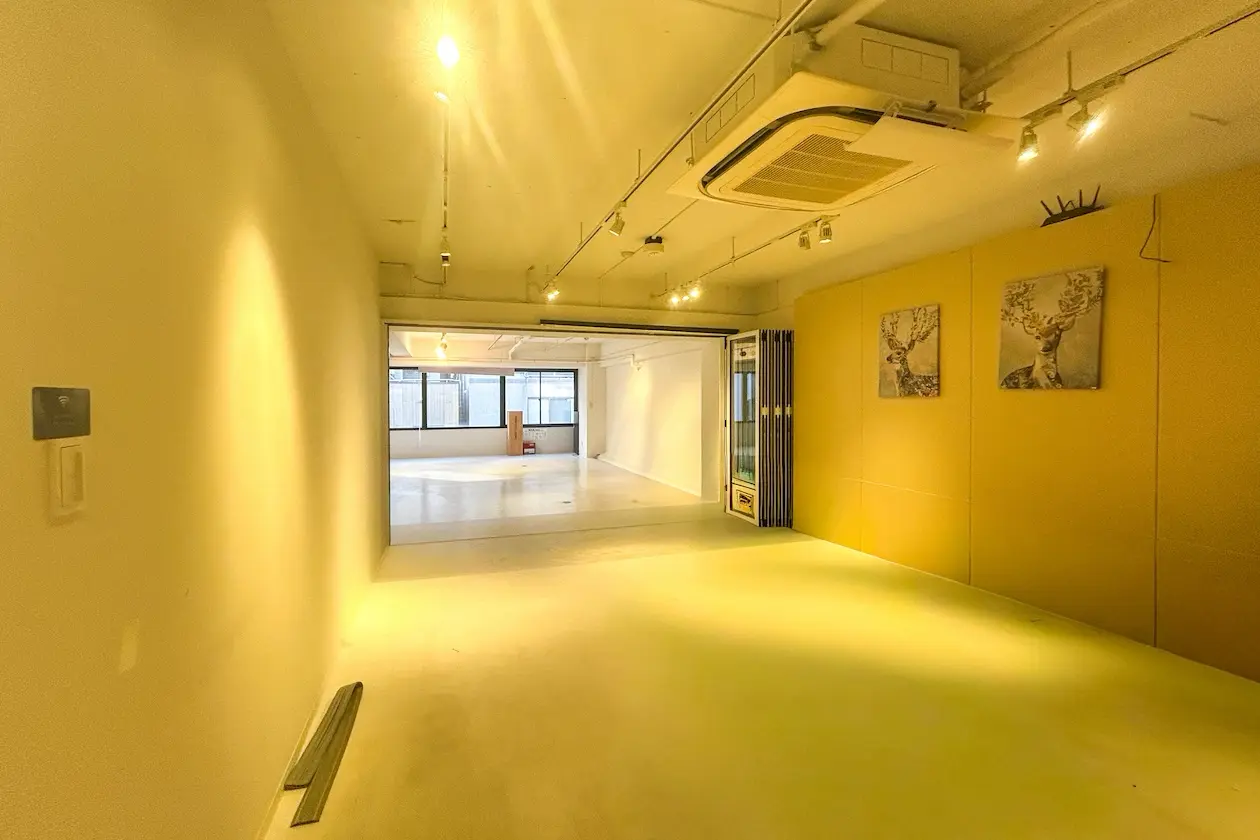室内にはスポットライトやライン照明が設置され、撮影・制作・打ち合わせなど多様なワークを行いやすい環境が整っています。